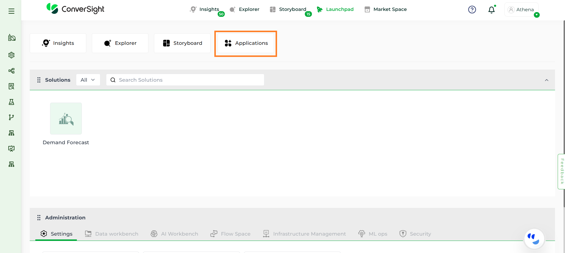 Athena is available on every screen in the ConverSight platform. Simply click the Ask Athena icon to open it anytime.