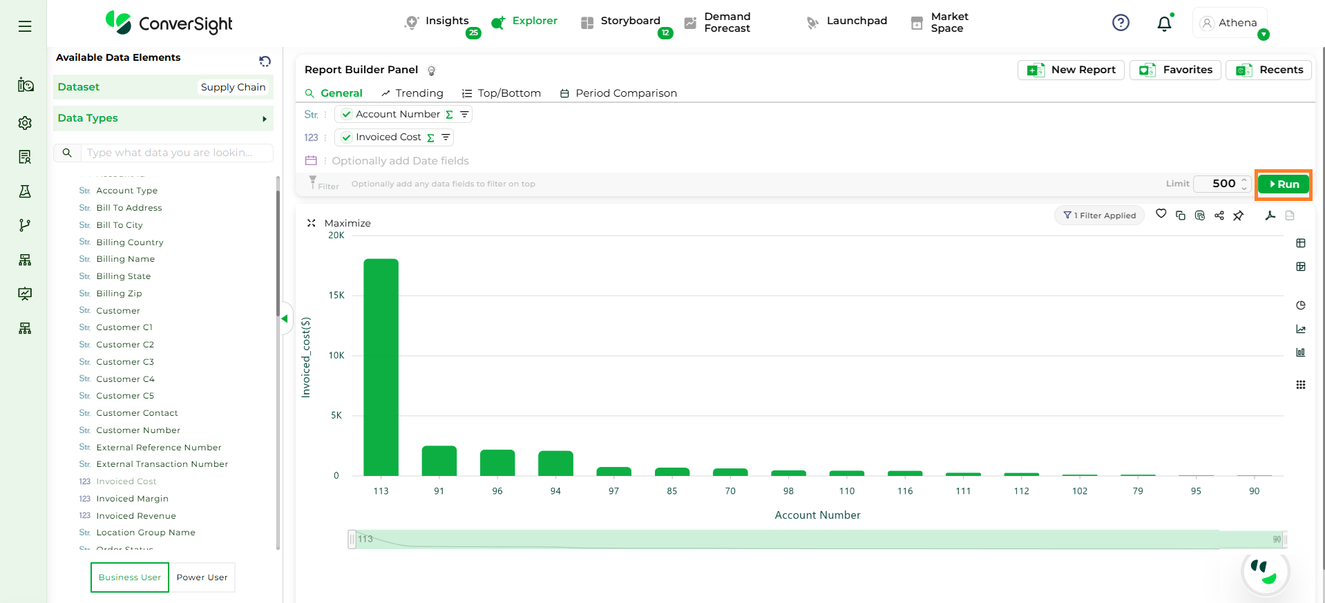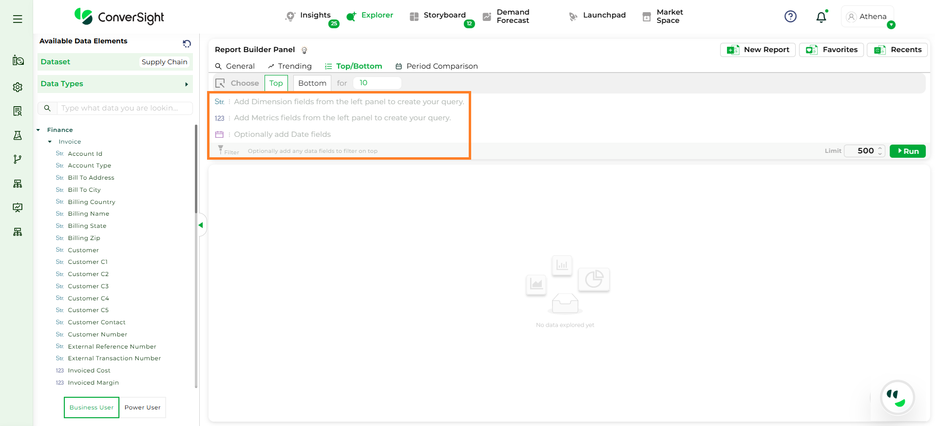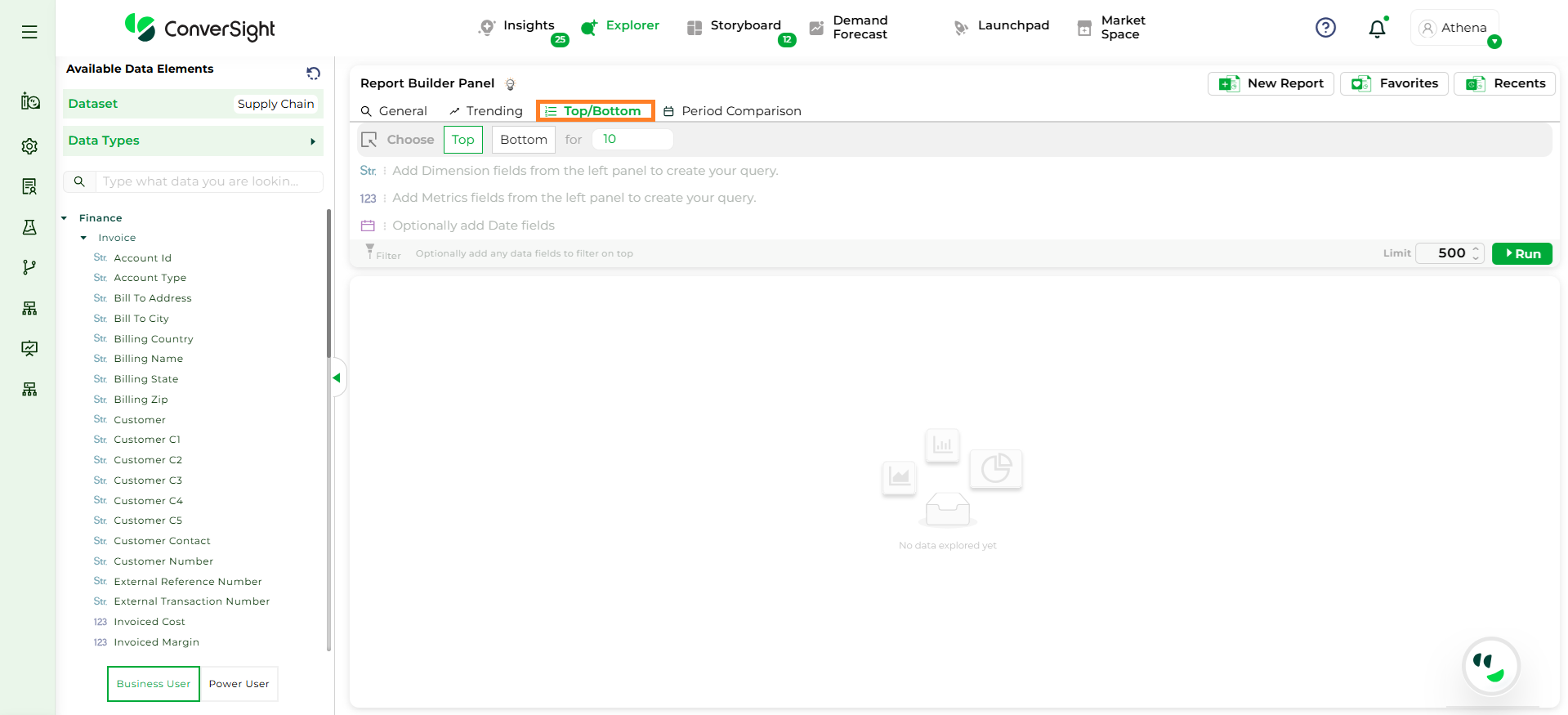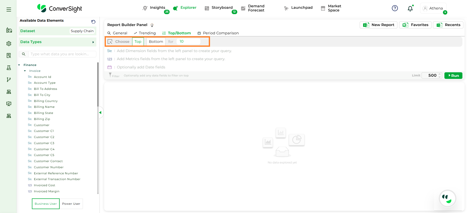Step 5: After all selections are made, click the Run button to generate the Top/Bottom report.