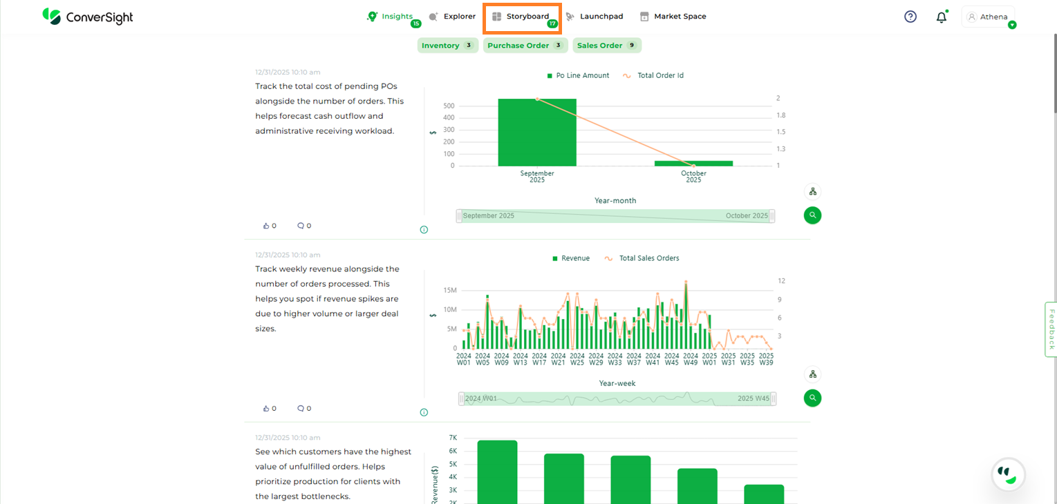 To navigate to Storyboard tab, Click on Storyboard in the ConverSight platform.