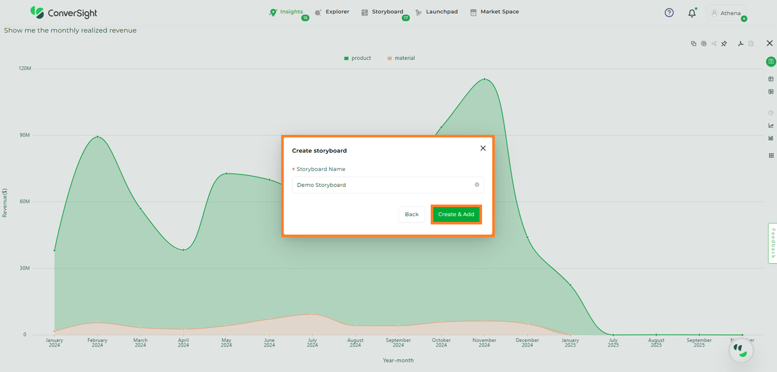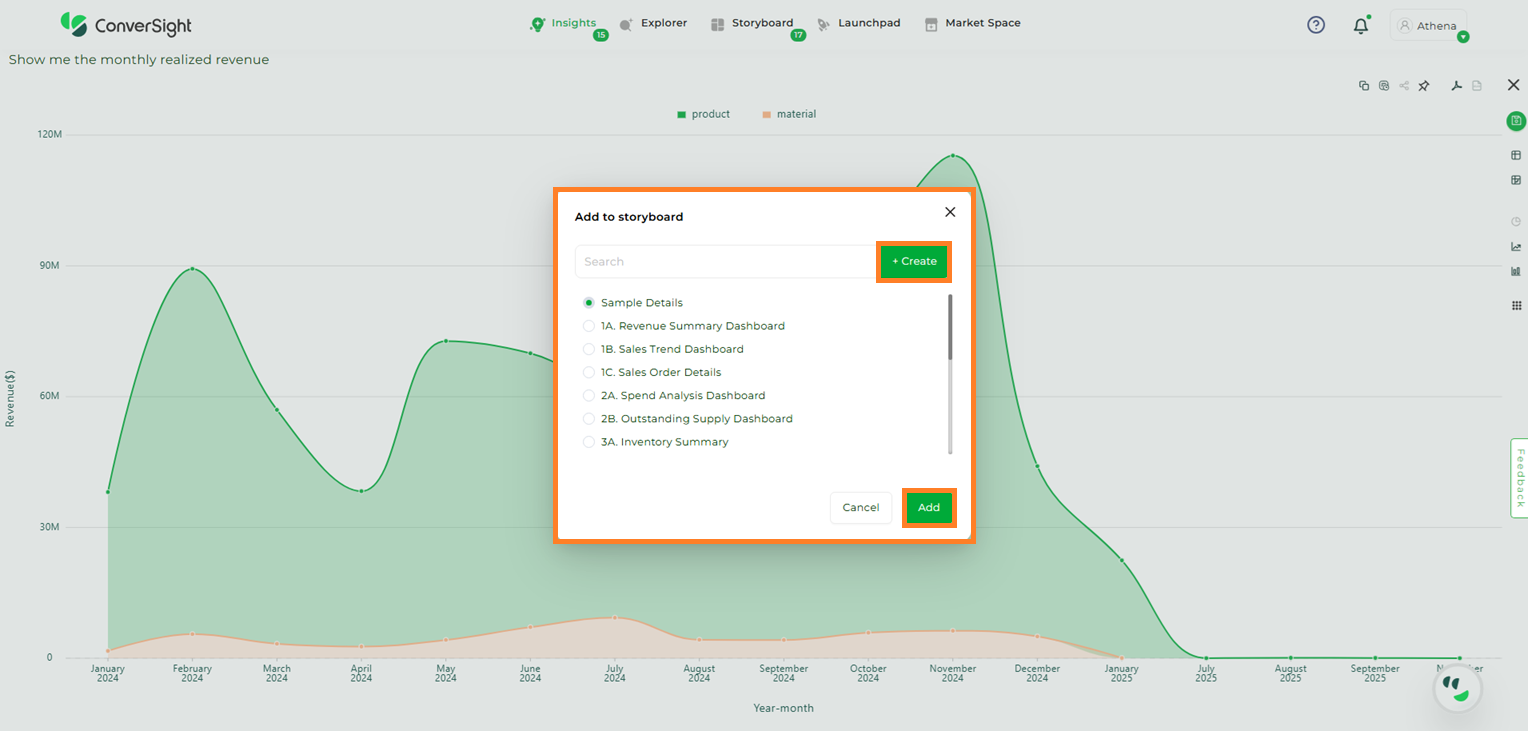 Create Storyboard allows users to directly create a storyboard within the storyboard page. By grouping related queries into a single view, users can build a clear data narrative that enhances analysis and collaboration.