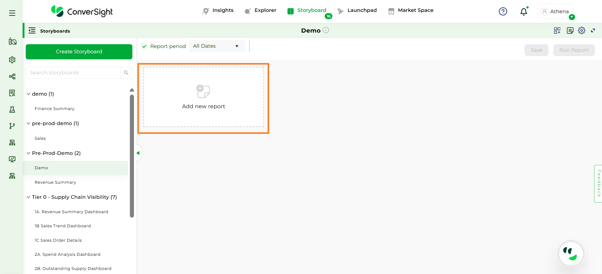 Step 3: After completing the required configurations, click Save. A new Add New Report card will be generated for the storyboard.