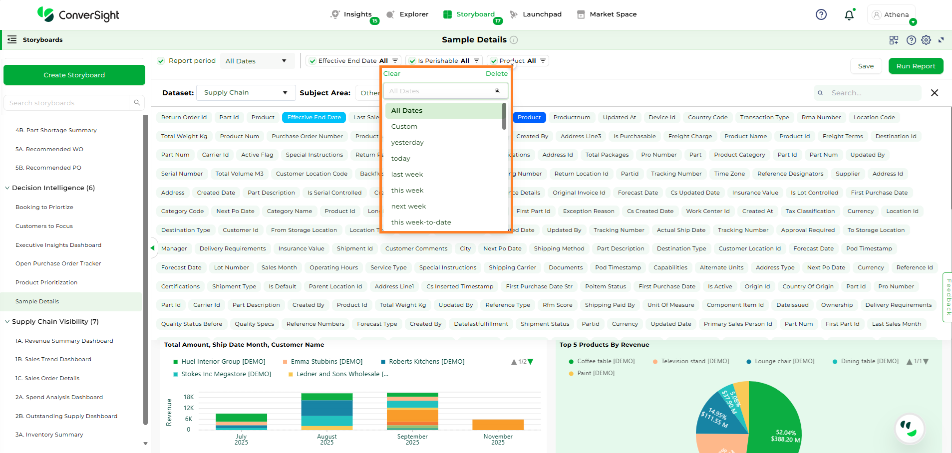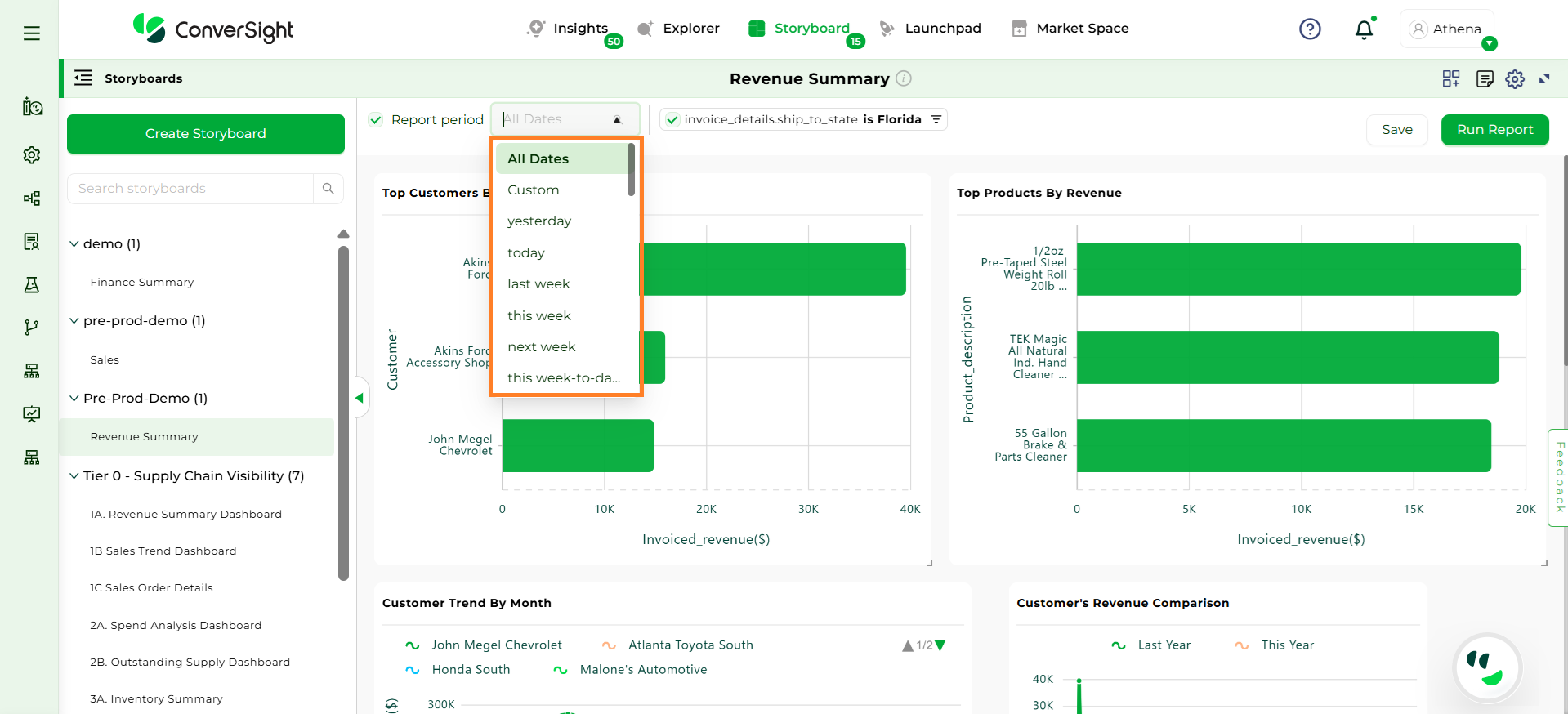 The Report period feature is a handy way to filter data based on specific dates.