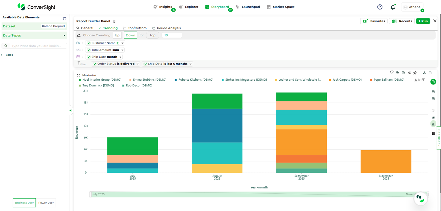 Customizing a storyboard allows you to tailor the presentation of your data to better suit your needs. By rearranging insights, changing chart types and applying filters, you can create a more organized and relevant view that highlights key information and improves decision-making. This flexibility ensures that your storyboards are not only visually appealing but also aligned with your specific analytical goals and business context.