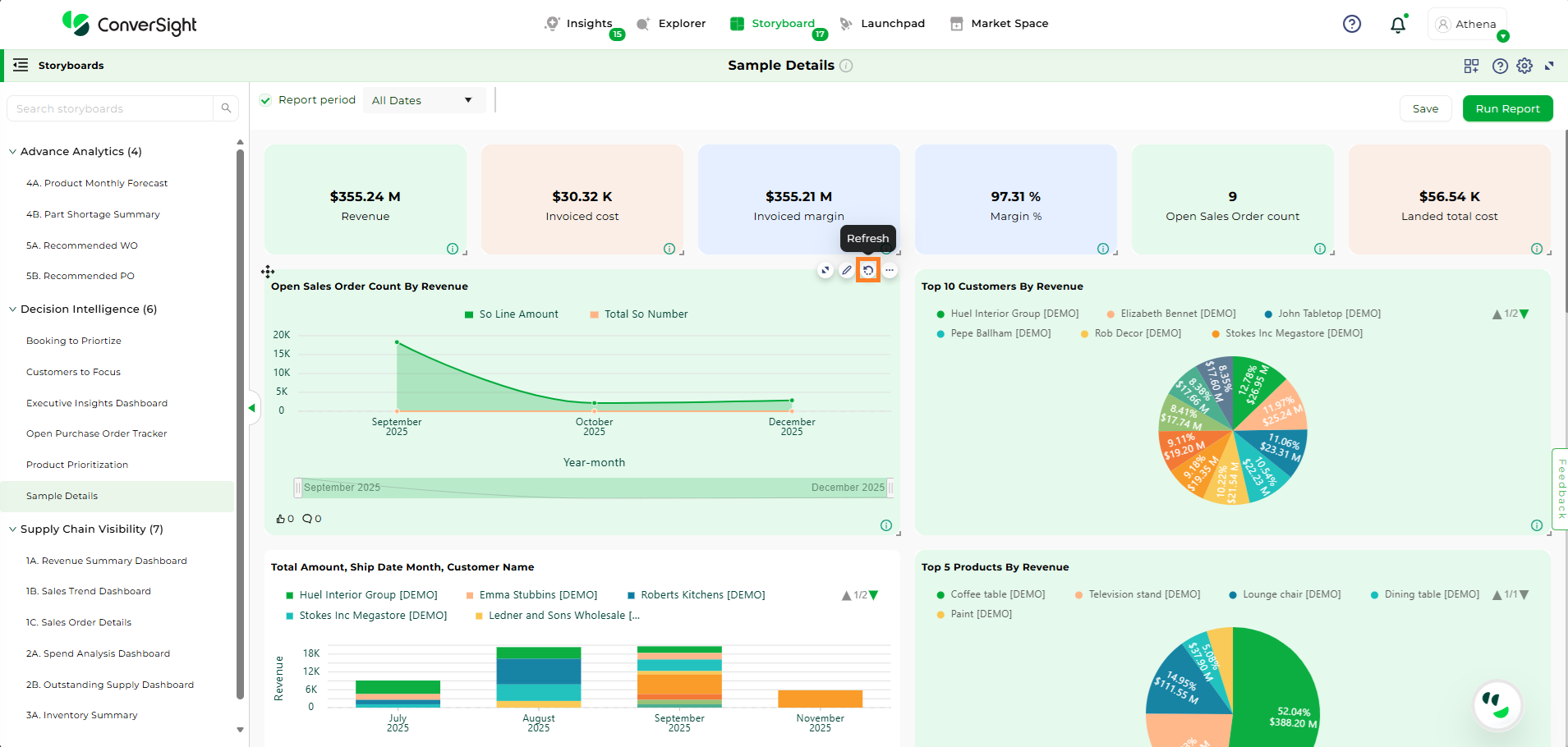 Clicking the Refresh icon on any insight to regenerate it with the latest available data, ensuring real-time accuracy.