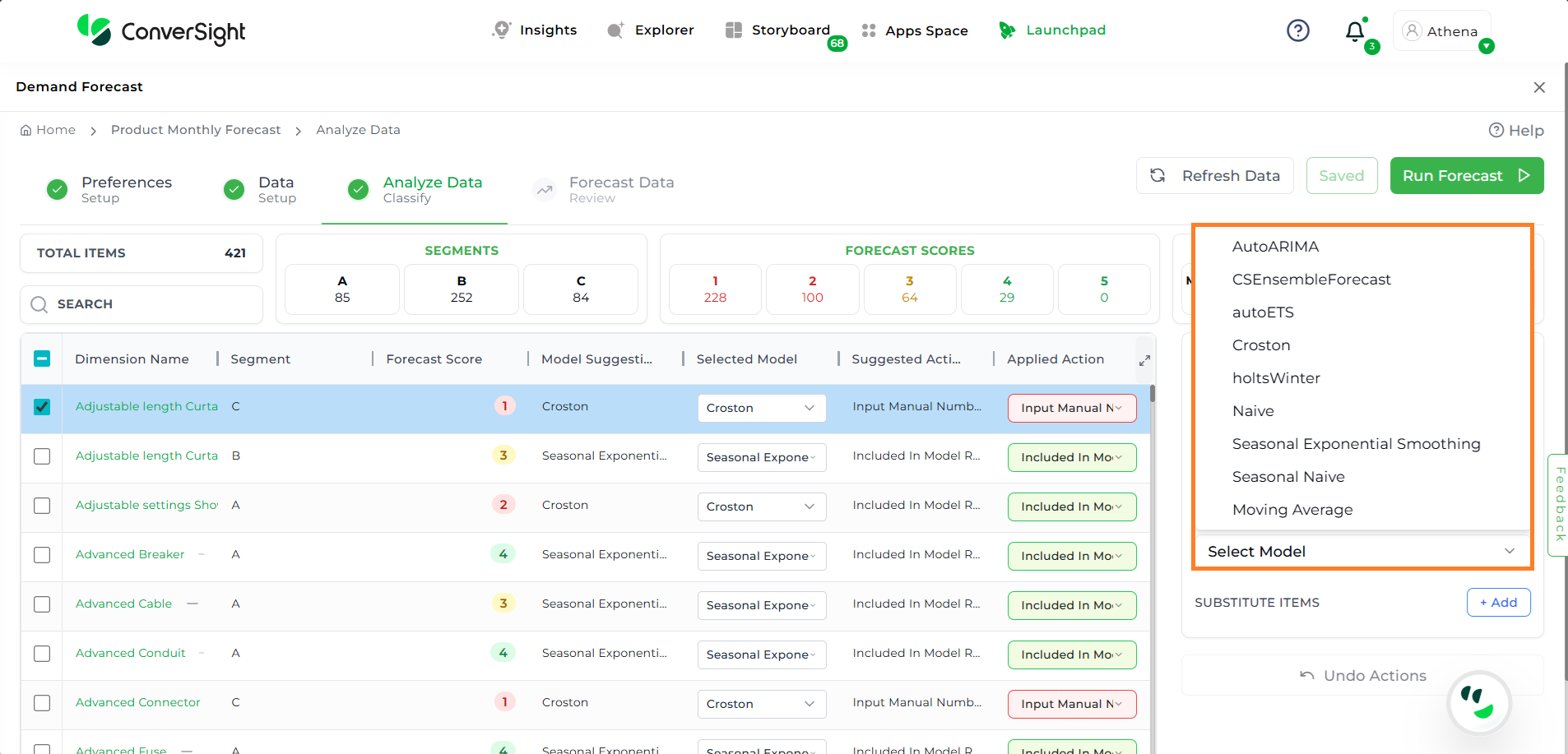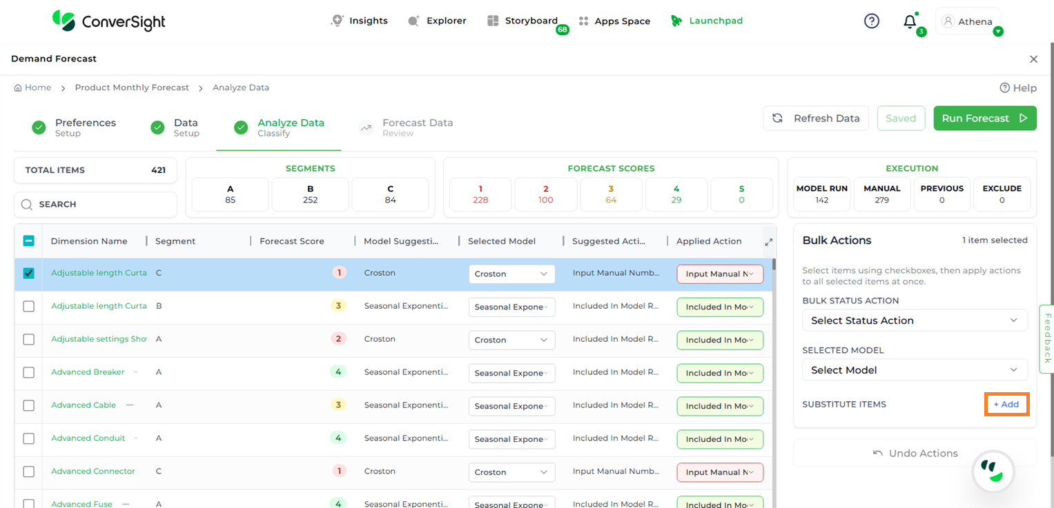 Once the analysis is saved, click on the Run Forecast button to initiate the forecasting process based on the current data setup and applied actions.