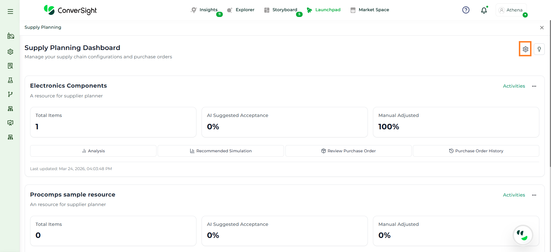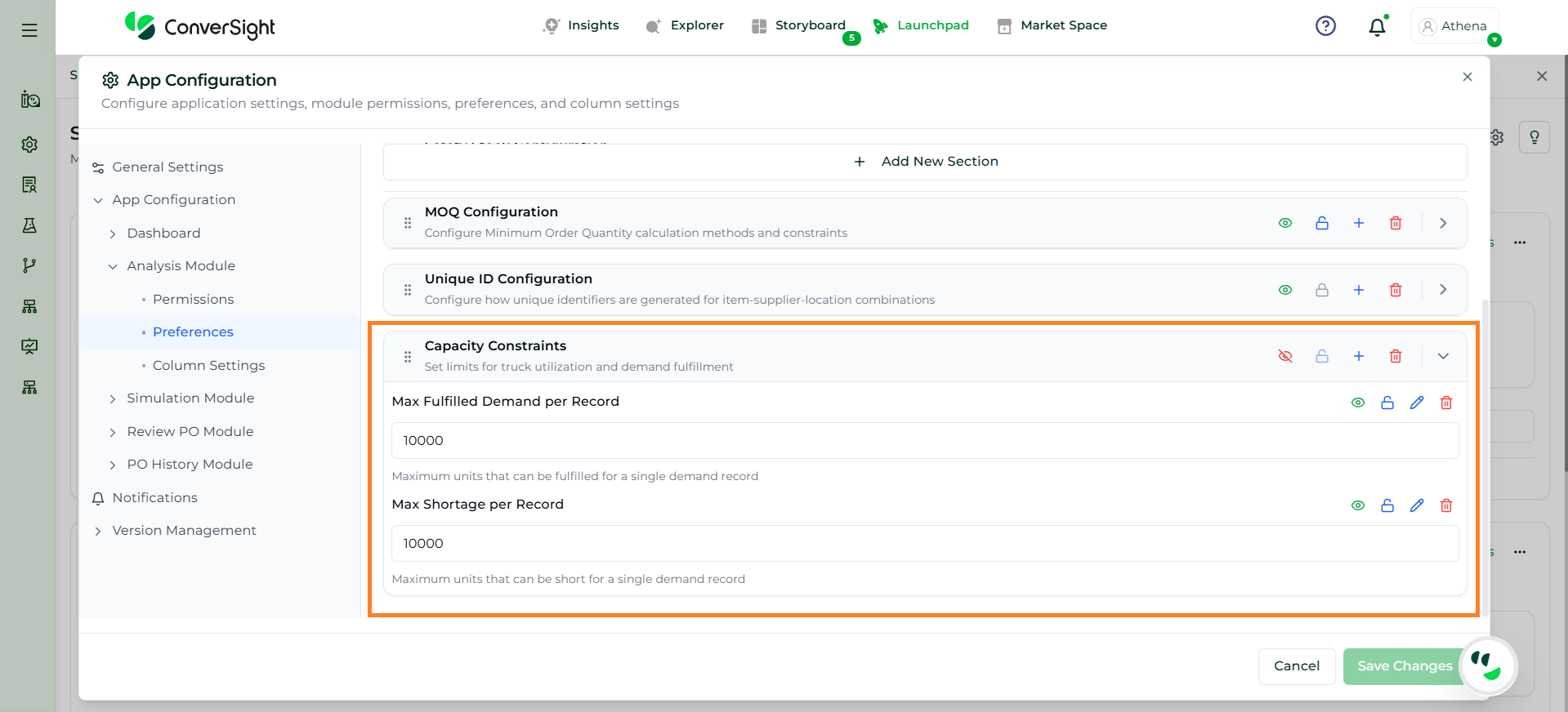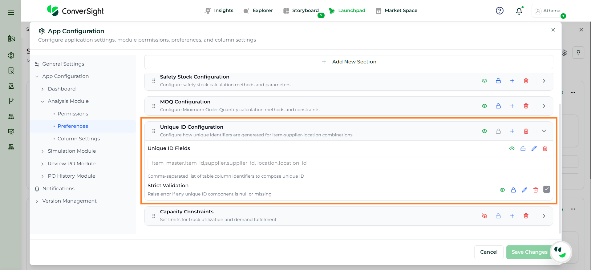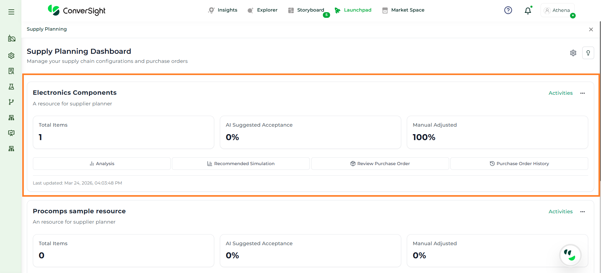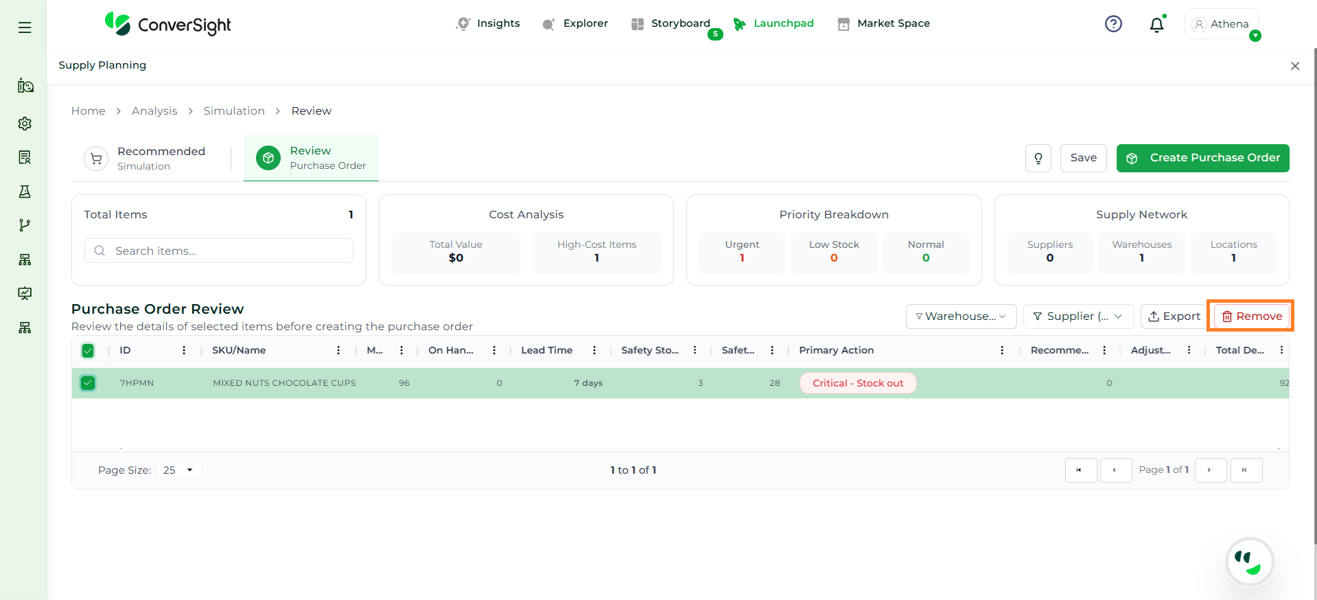 Athena highlights the underlying reasons behind each issue and suggests alternative configurations or parameter adjustments. These may include changes to MOQ, weeks of supply, review periods, or other planning constraints.
