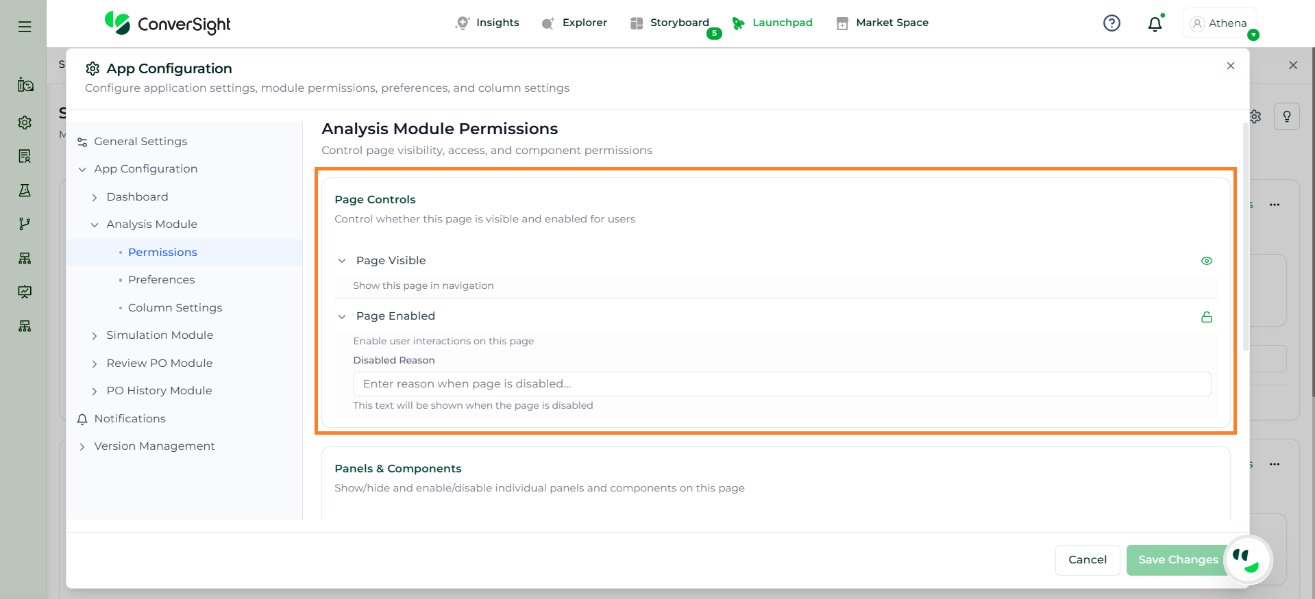 The Panels & Components section provides an overview of the key interface elements available in the Analysis module, enabling users to interact with data, configure settings, and perform analysis actions.