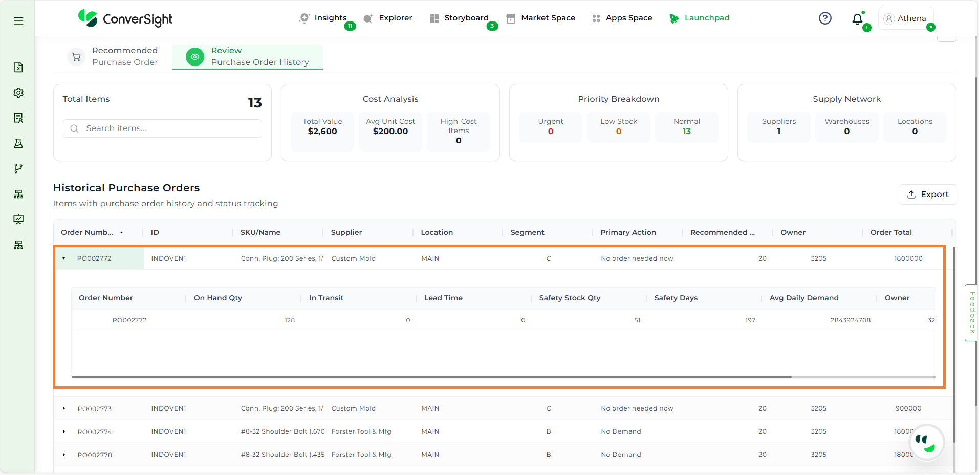The Recommended Tab is your primary workspace for analyzing inventory needs. It helps users evaluate items based on demand, cost, and risk of stockouts.