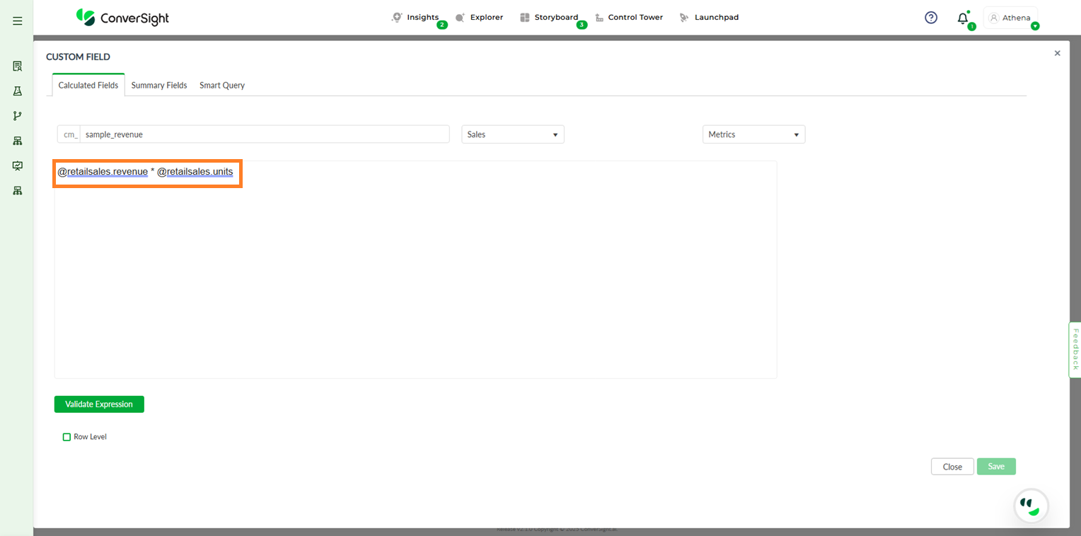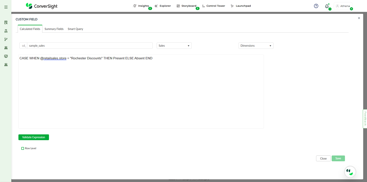 Custom Fields are created by applying conditions and executing operations on pre-existing data fields. The general syntax for creating Calculated Fields is