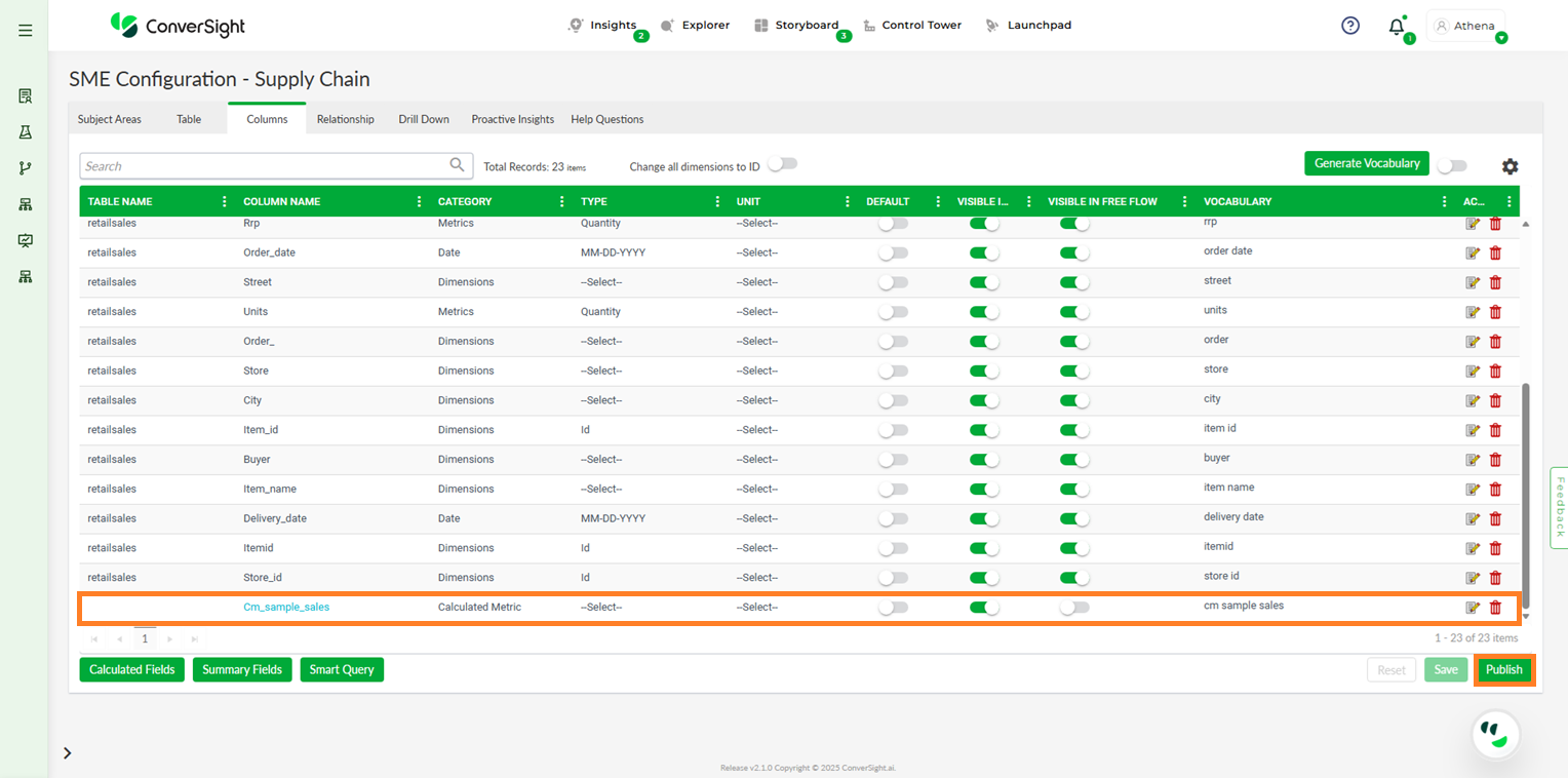 Step 9: The page will then redirect to the SME coaching page, where you need to publish your Calculated Fields by clicking the Publish button.