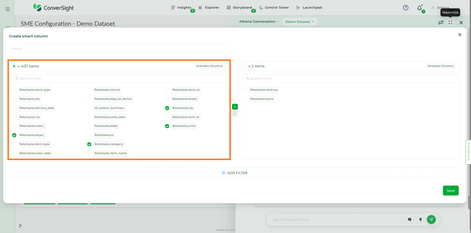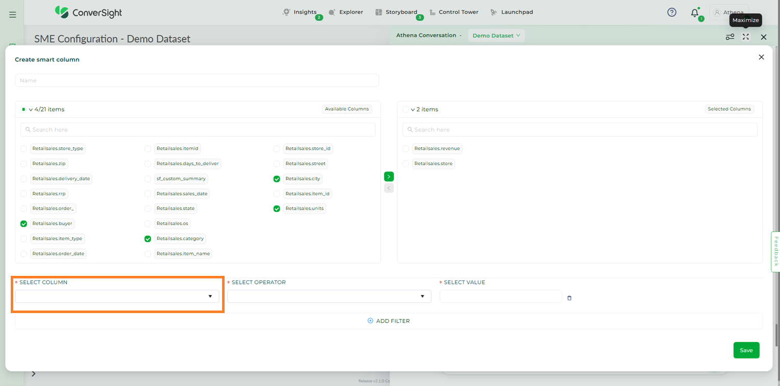 Step 1: To create a Smart Column in Athena , click on the Create Smart Column icon.