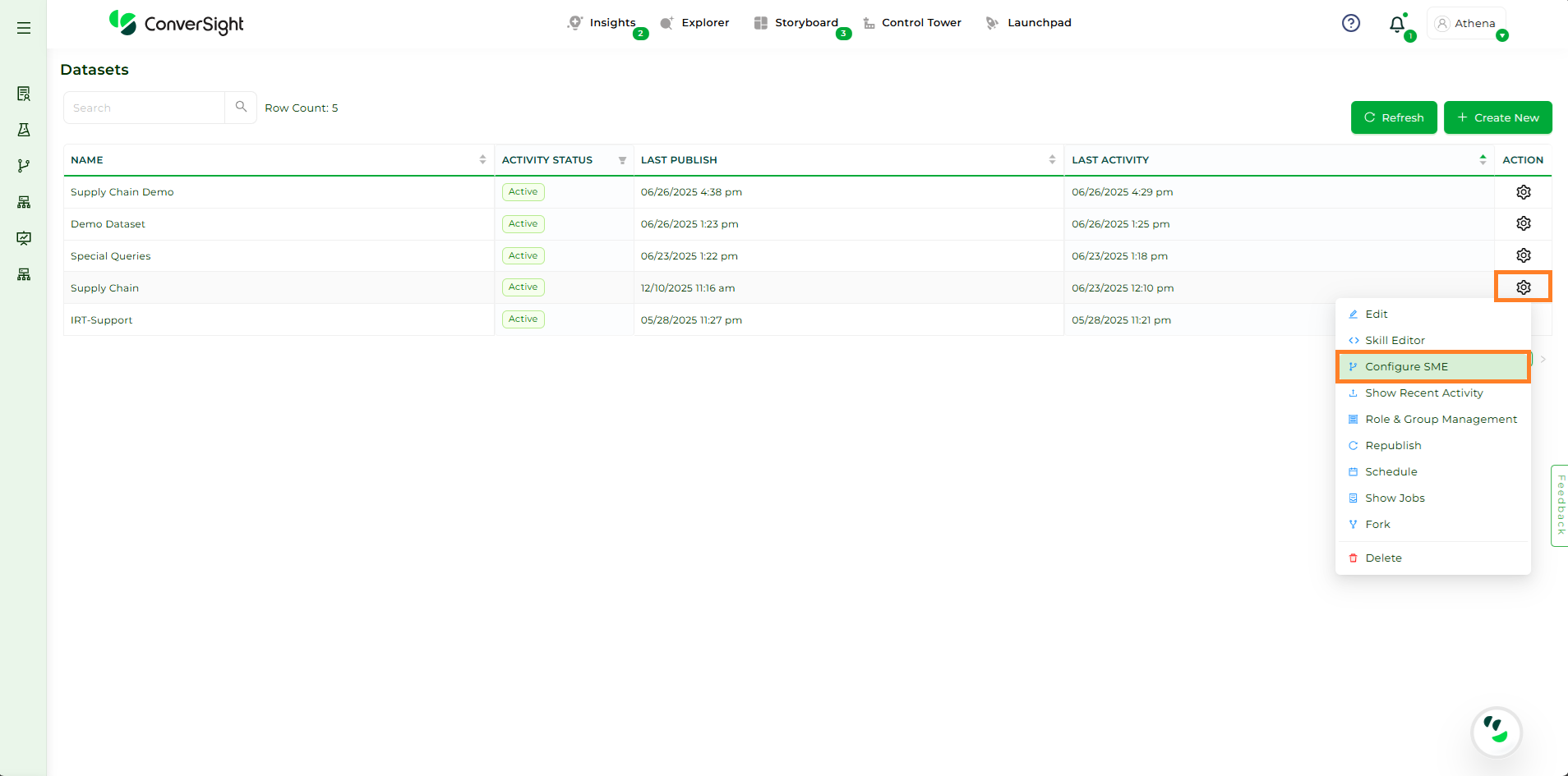 icon located in the Action column of the Data Management, and then choose Configure SME.