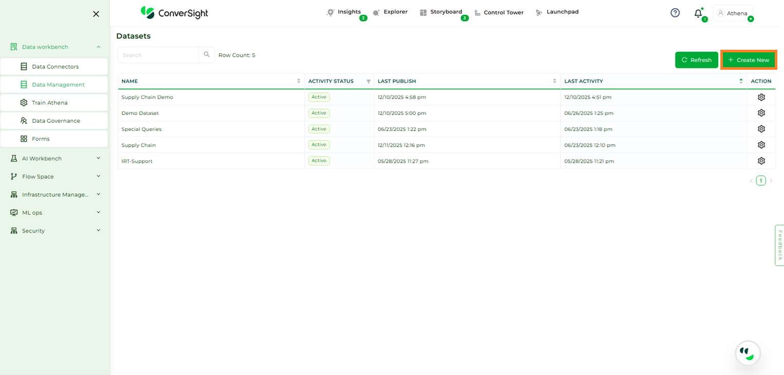 After establishing the data connection, you can proceed with the following instructions to create a Dataset.